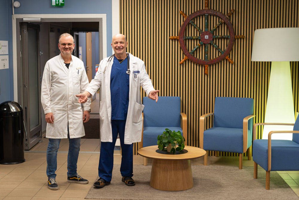 Kuvassa: Kardiologian erikoislääkäri Veli-Pekka Harjola ja yleis-ja akuuttilääketieteen erikoislääkäri Heikki Janhunen. Lääkärisatama sai tuulta purjeisiin loppusyksystä v. 2024. Ammattilaisilta puuttui Jyväskylässä oma paikallinen asemapaikka, jossa